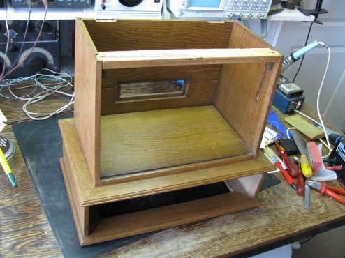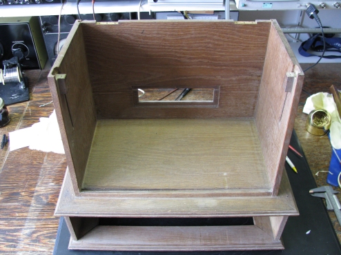 Onder de radio zit een lade waar de rooster en anode batterijen kunnen worden onder gebracht.