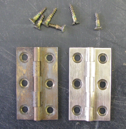 Vervolgens de scharnieren van de deksel en uiteraard ook de schroefjes weer mooi polijsten.